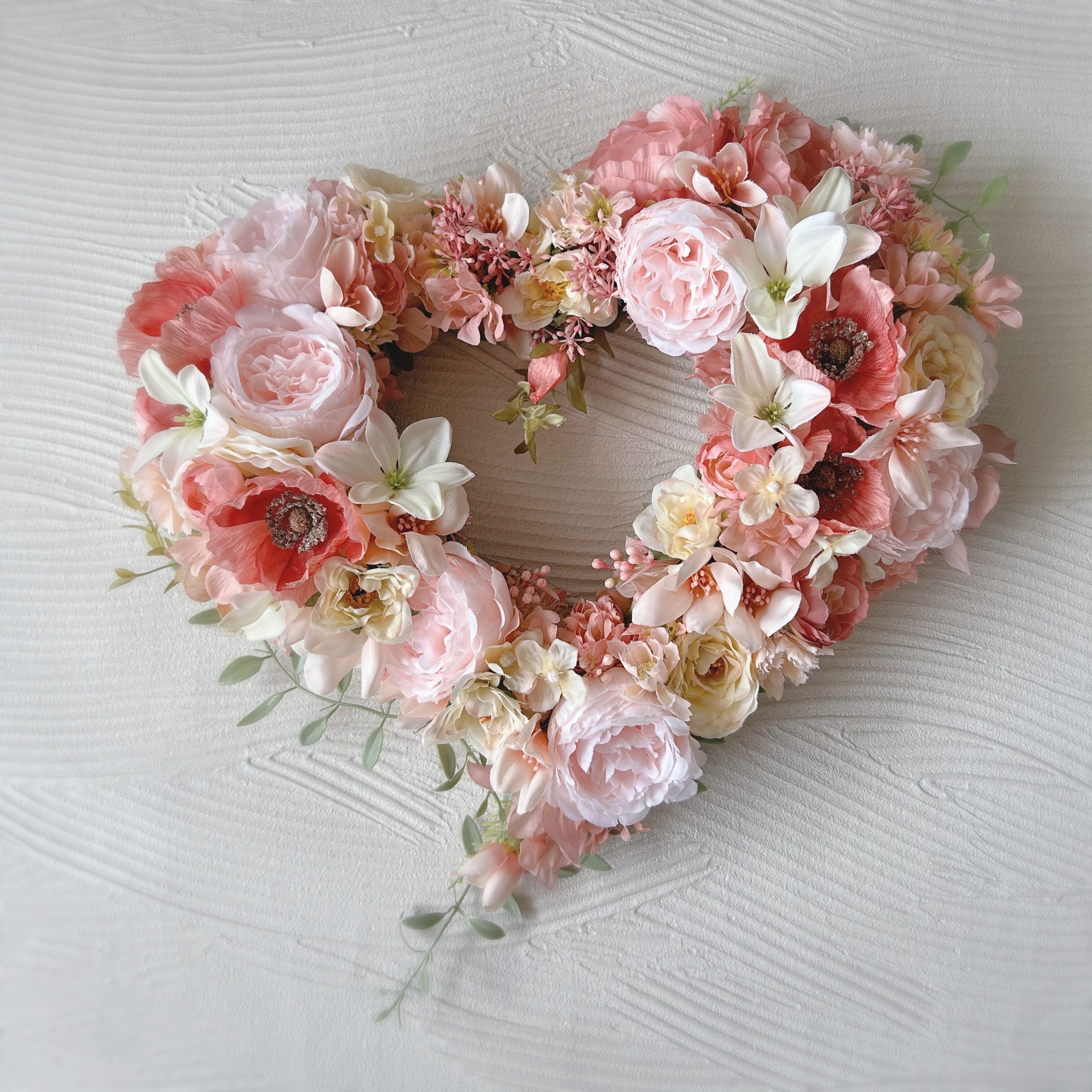 アンティークピンクのローズハートリース/フラワーギフト/フラワーインテリア/母の日ギフト/結婚祝い/ウェディングアイテム/ドアリース/ピンクリース
