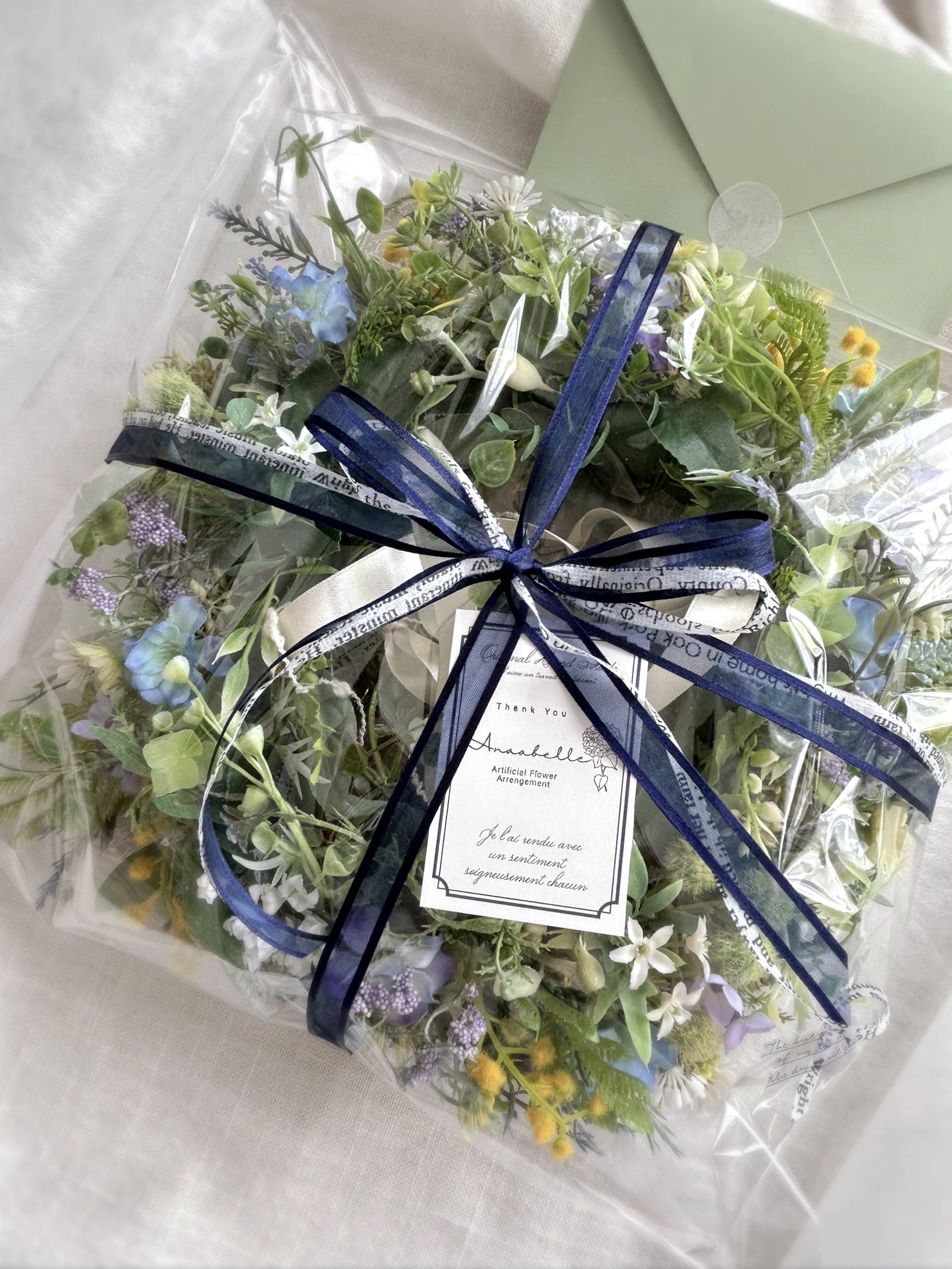 《使用花材》アーティフィシャルフラワー:紫陽花、グリーンネックレス、ラベンダー、グリーン類