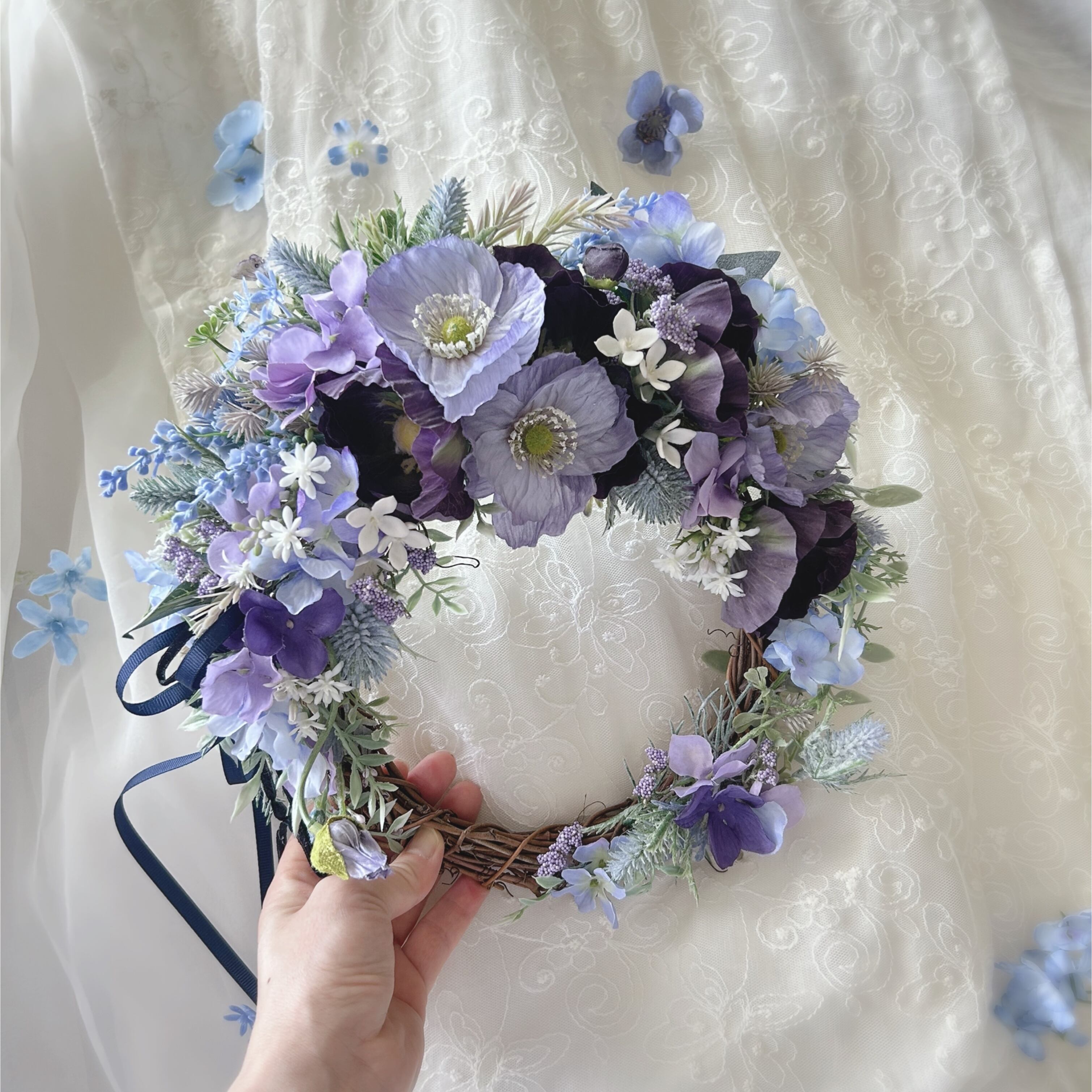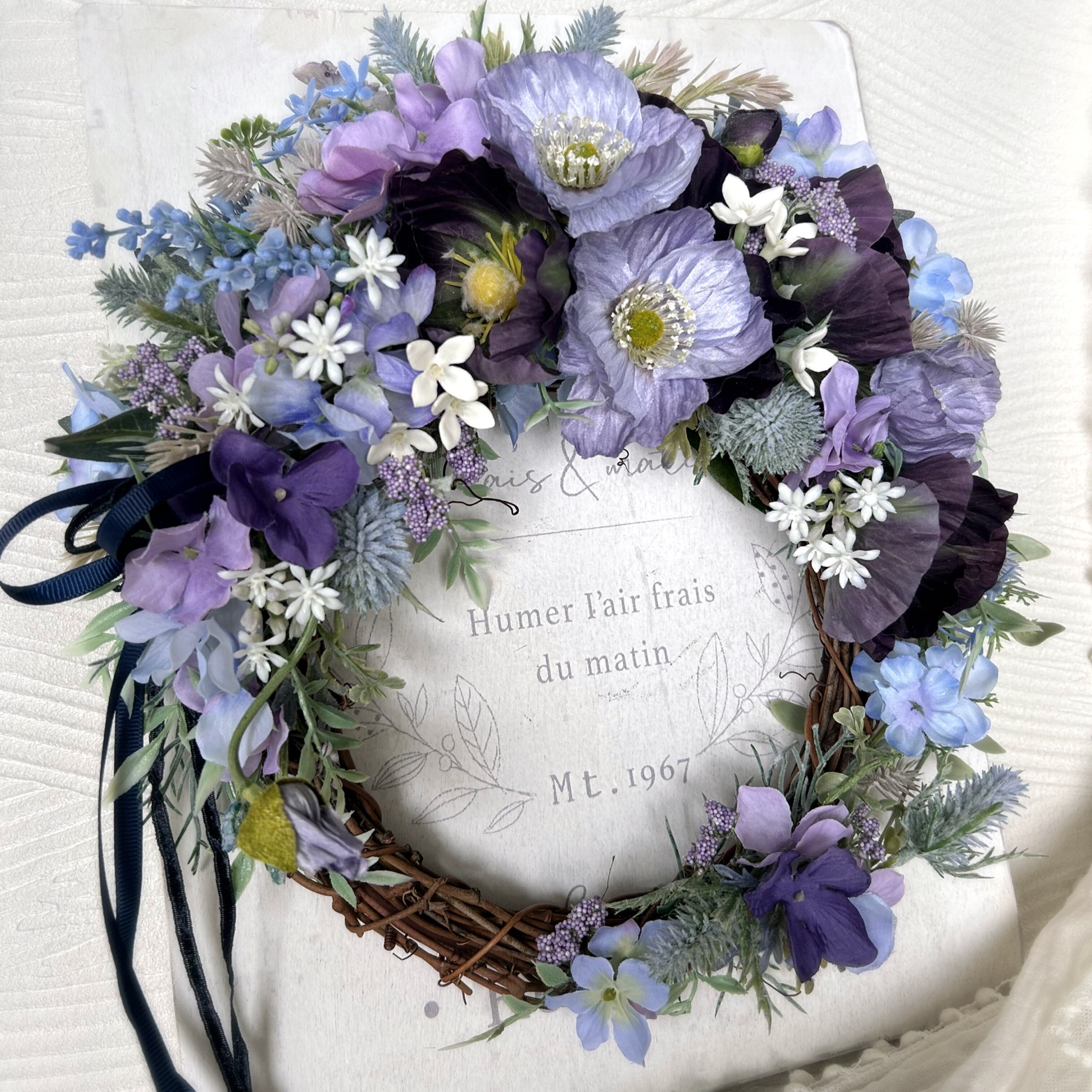 パープルポピーリース/フラワーリース/造花リース/フラワーインテリア/フラワーギフト/母の日ギフト/新築祝い/誕生日プレゼント/古希のお祝い