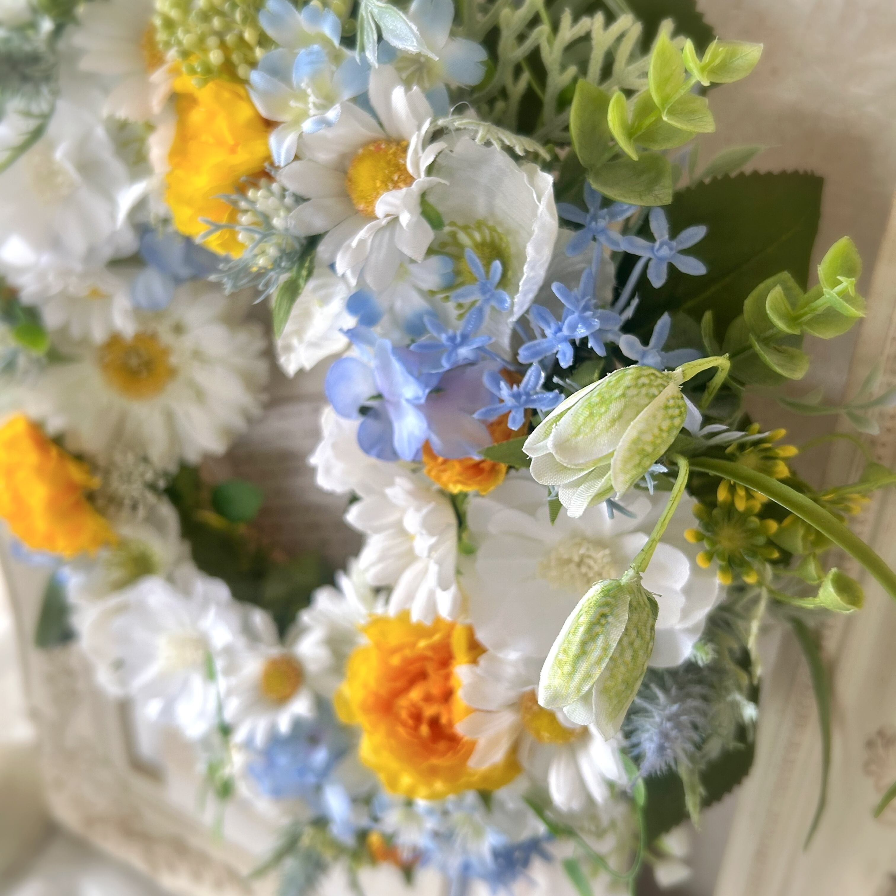 《使用花材》アーティフィシャルフラワー:ガーベラ、バラ、ラナンキュラス、デイジー、フリチラリア、レースフラワー、グリーン類など