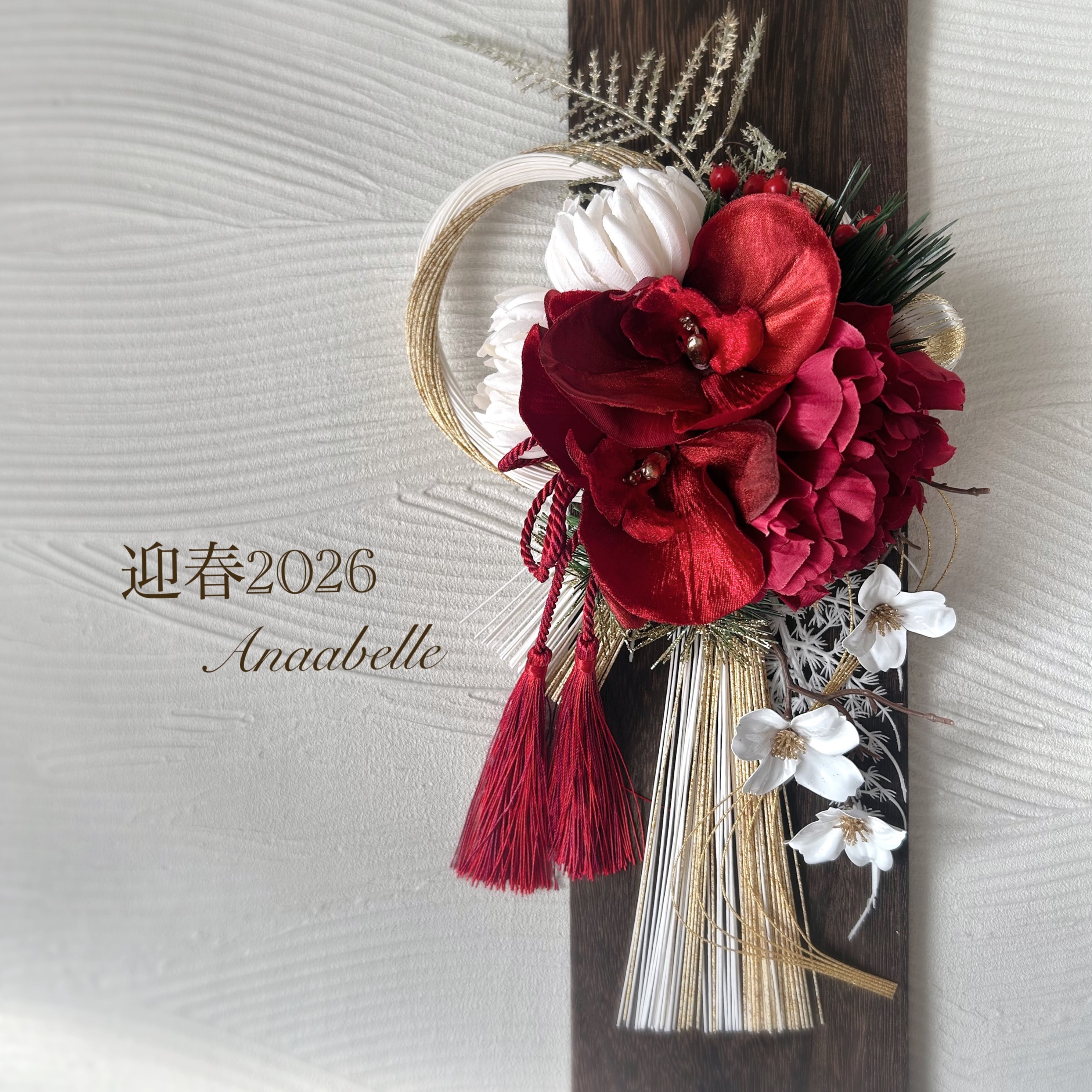 赤い胡蝶蘭と芍薬・白いハナミズキの紅白しめ飾り ラッピング無料 お正月飾り しめ縄 和モダン 玄関 迎春飾り お歳暮 新年 お正月 華やか 高級感 上品