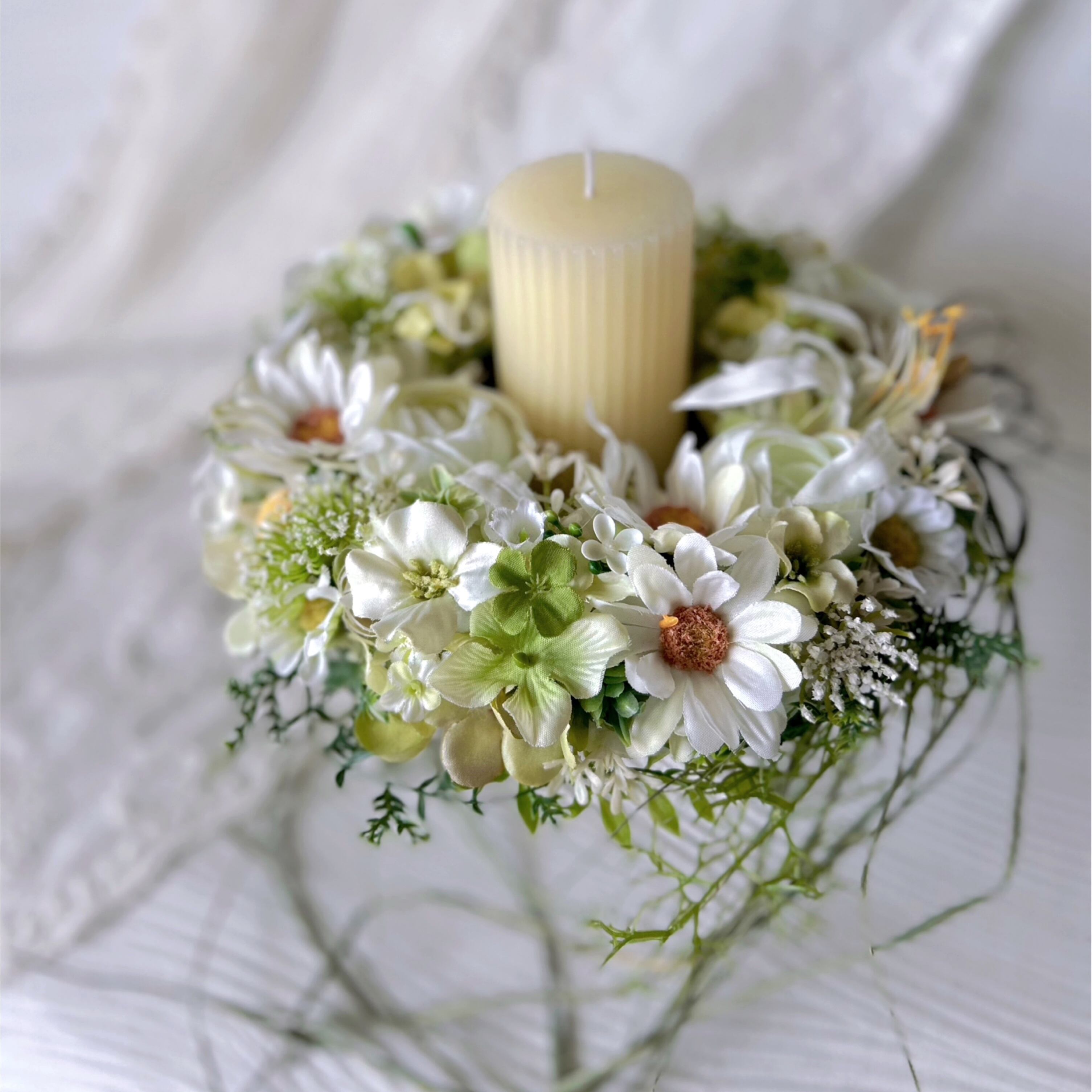 玄関やお部屋のドアリースや壁掛けにするのはもちろんチェストやテーブルの上にキャンドルホルダーとして置いても華やかになりますよ。
