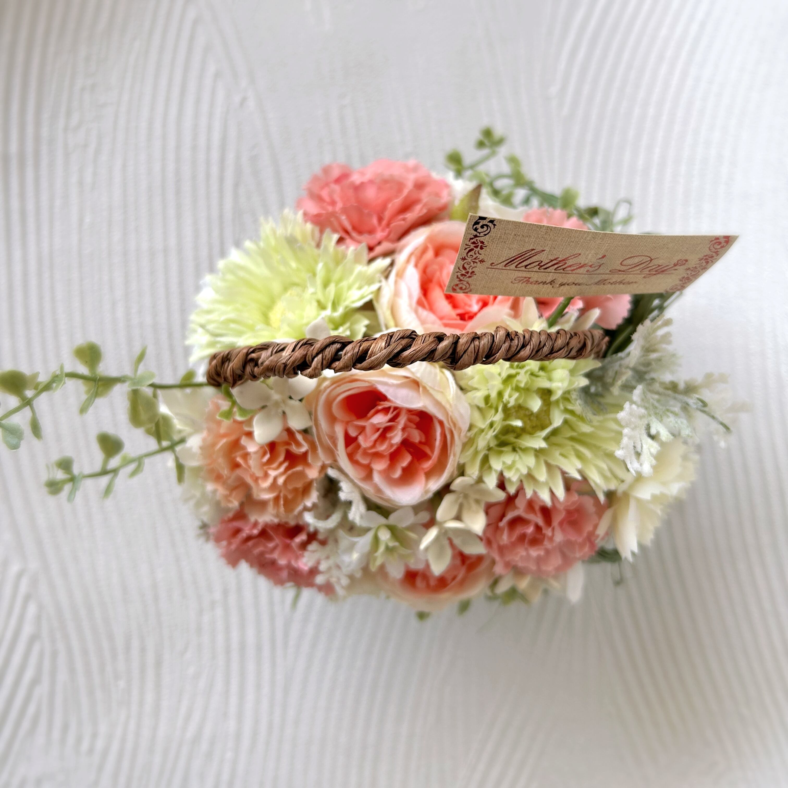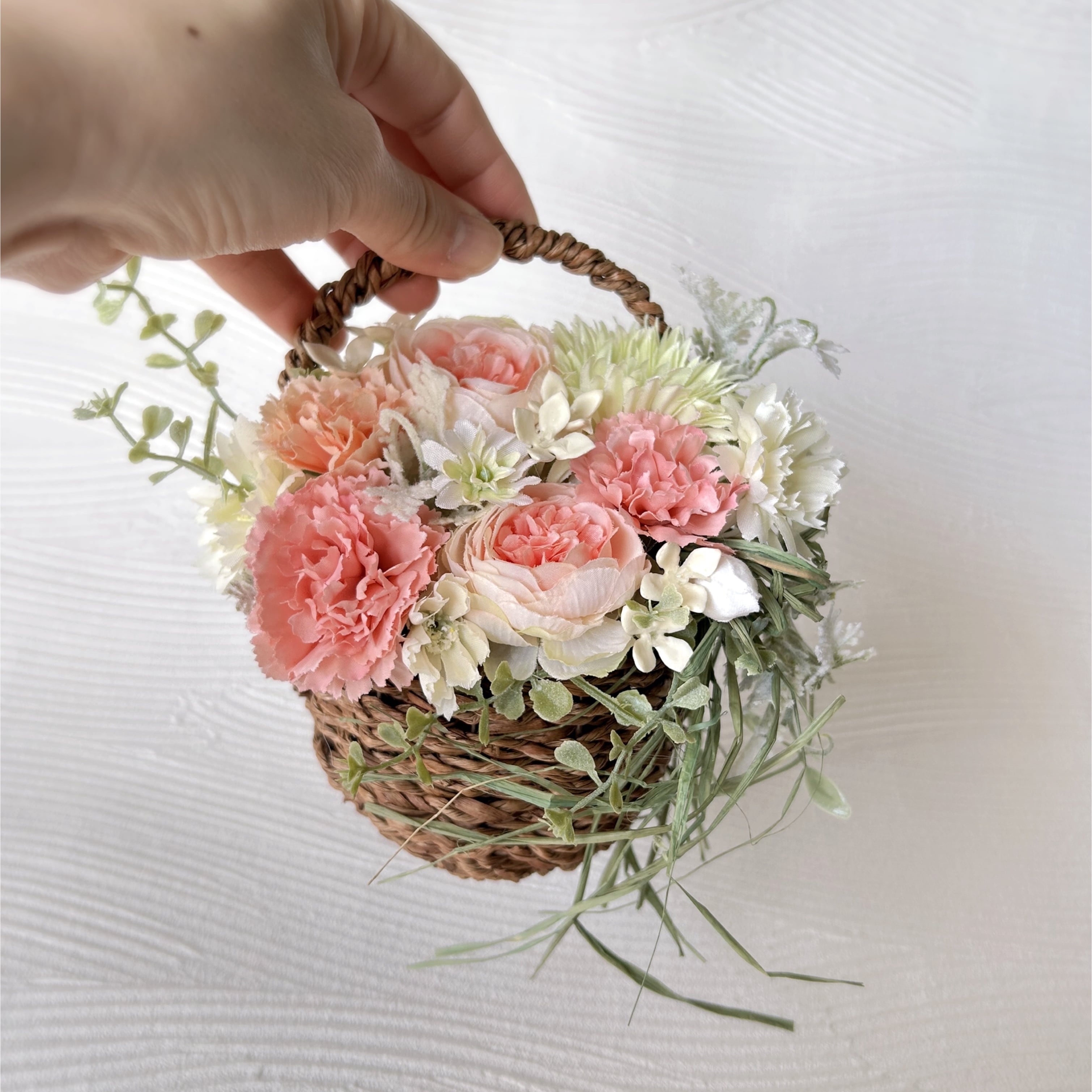 《使用花材》アーティフィシャルフラワー:ラナンキュラス、カーネーション、ガーベラ、デイジー、バラ、ブバリア、グリーン類