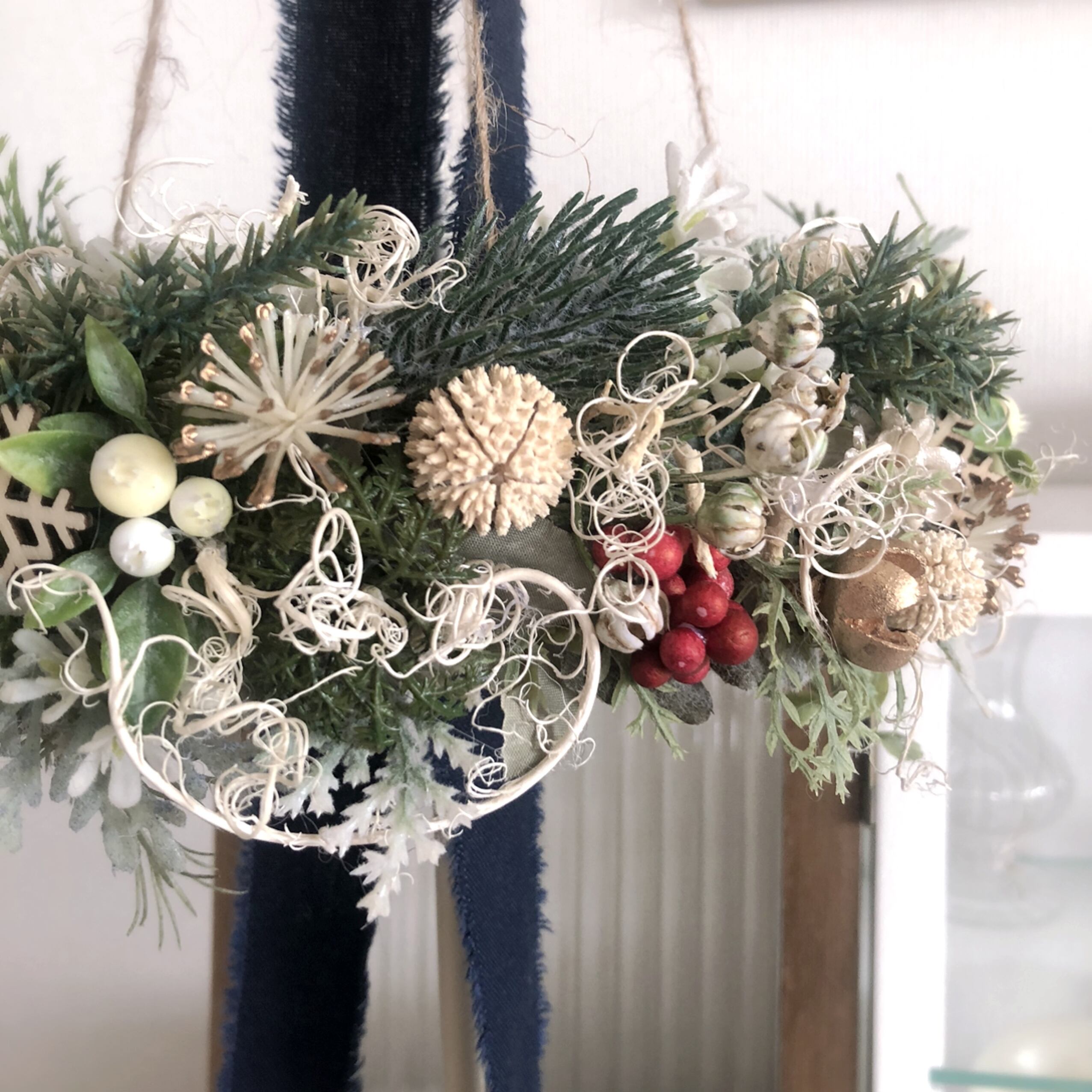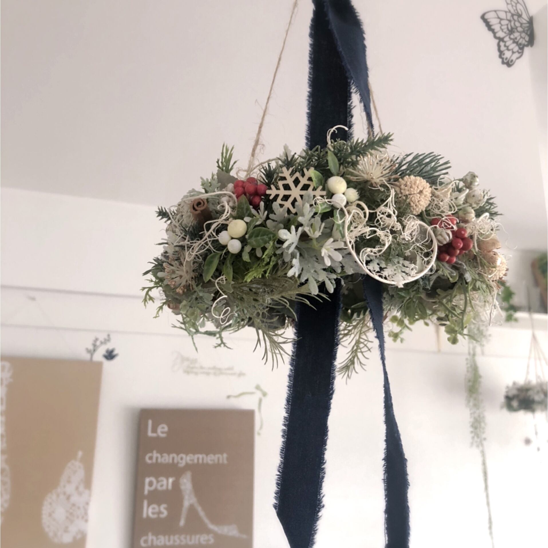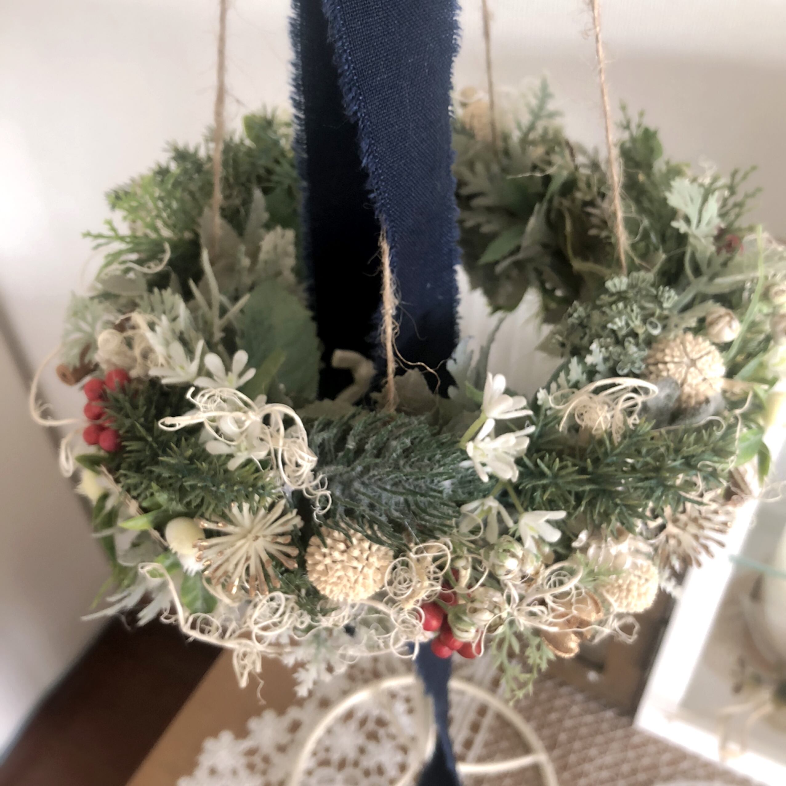 使って大人っぽくおしゃれなクリスマスリースに仕上げました。