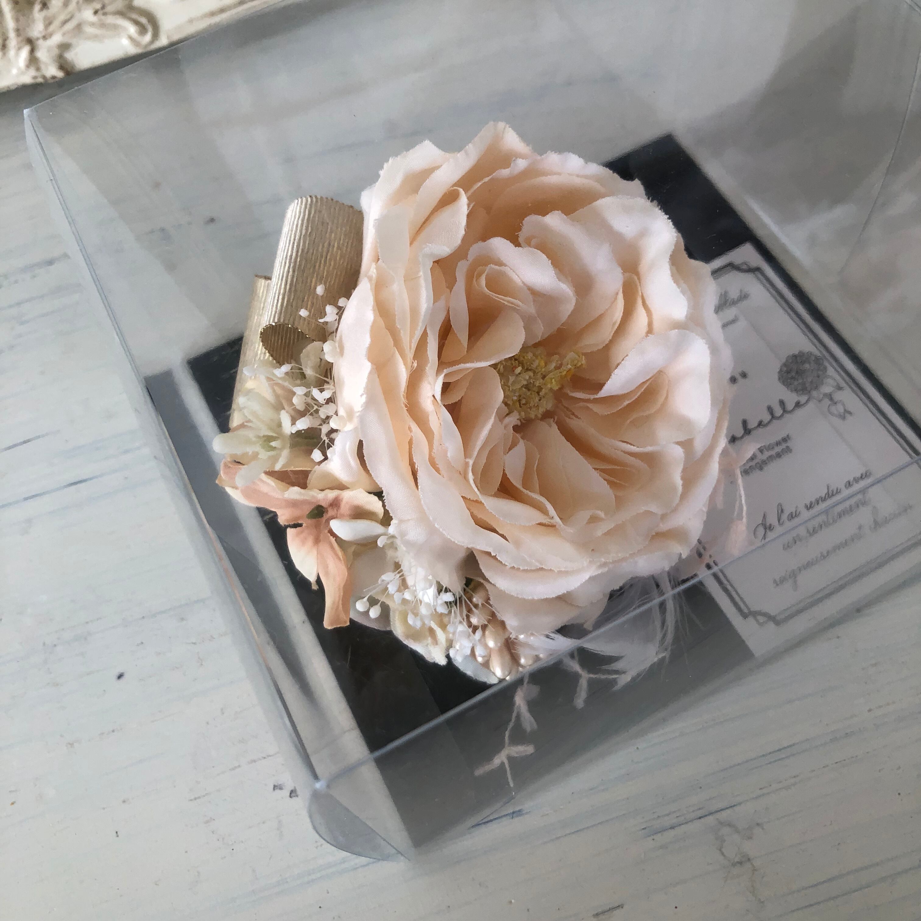 【再販】サーモンピンクローズコサージュ透明ケース付き/アーティフィシャルフラワー/造花コサージュ/入学式コサージュ/卒業式コサージュ/卒園式コサージュ/入園式コサージュ/セレモニーコサージュ/結婚式/おしゃれ/ナチュラル