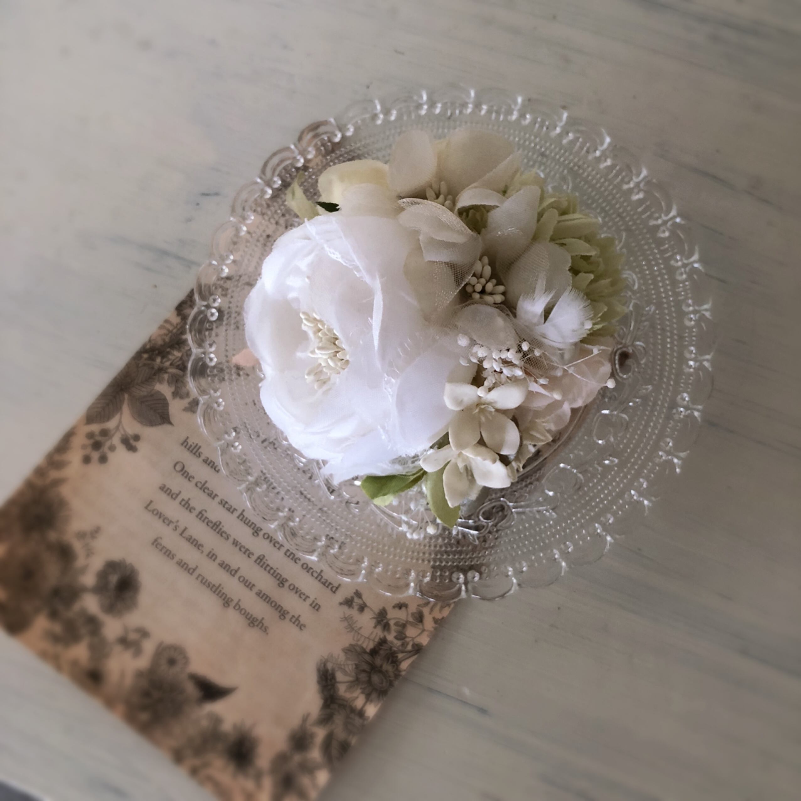 挟むことも出来る2wayタイプのコサージュ台を使っているので入学、卒業、結婚式のコサージュとしてだけでなくバックや帽子に付けたり、髪飾りとしても使っていただけます。