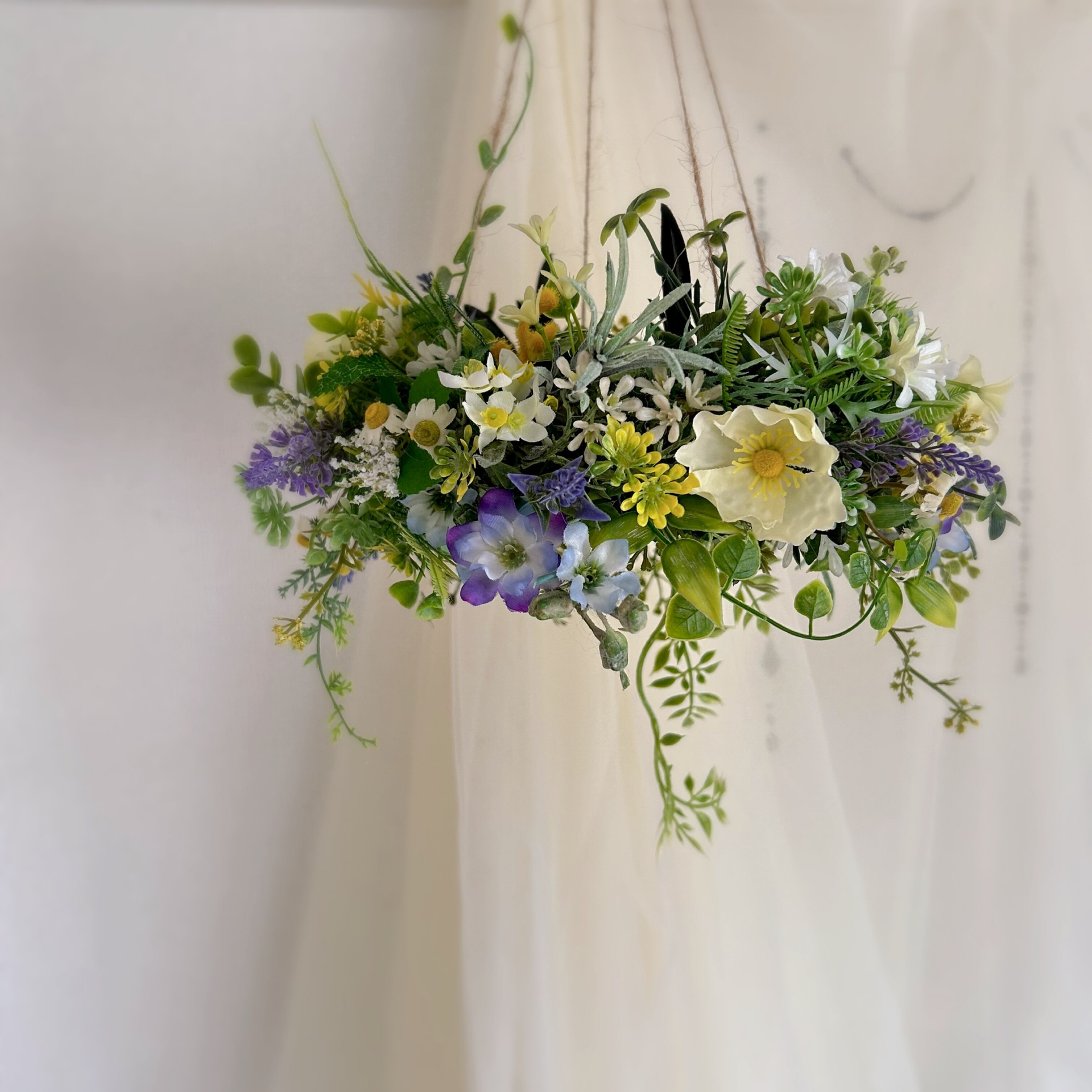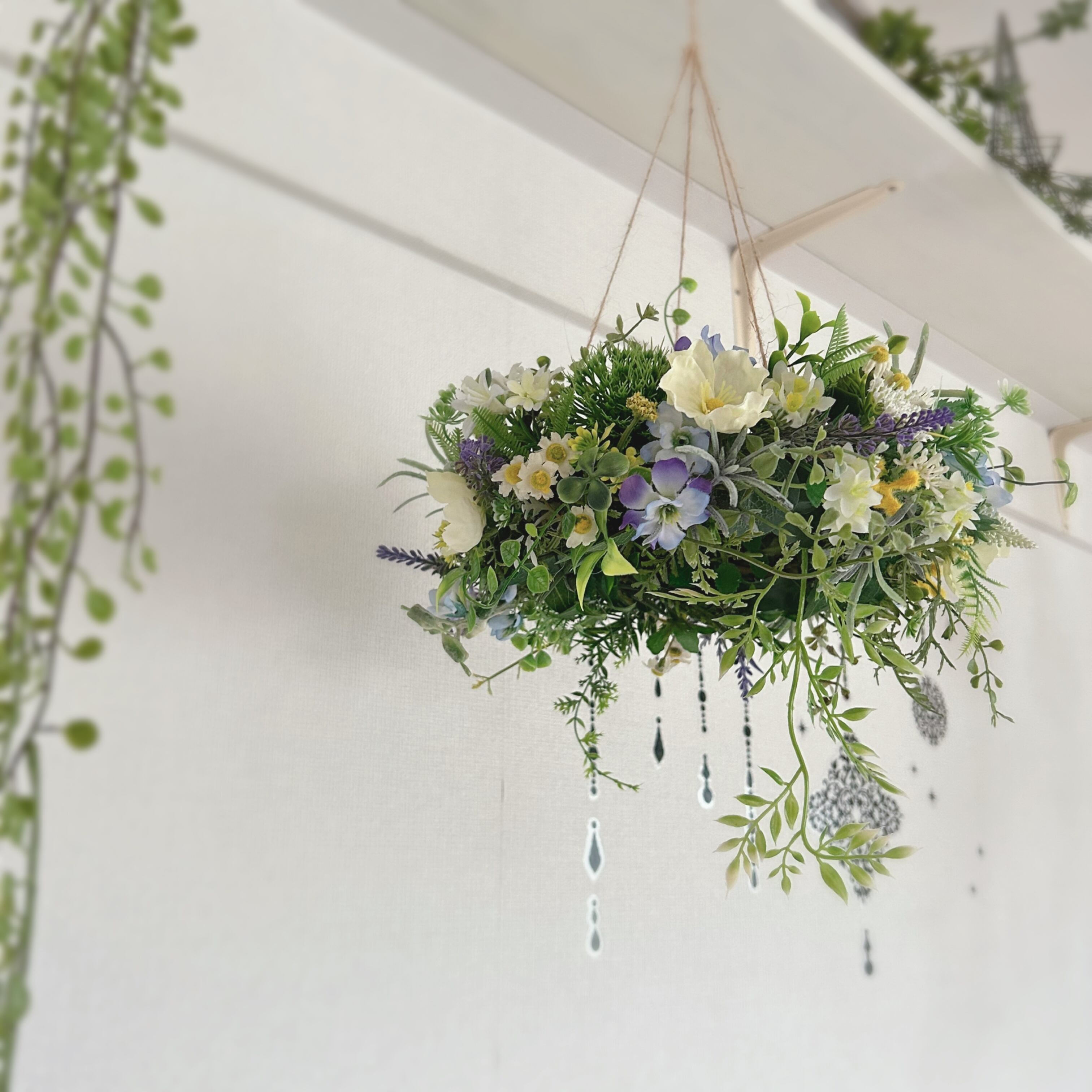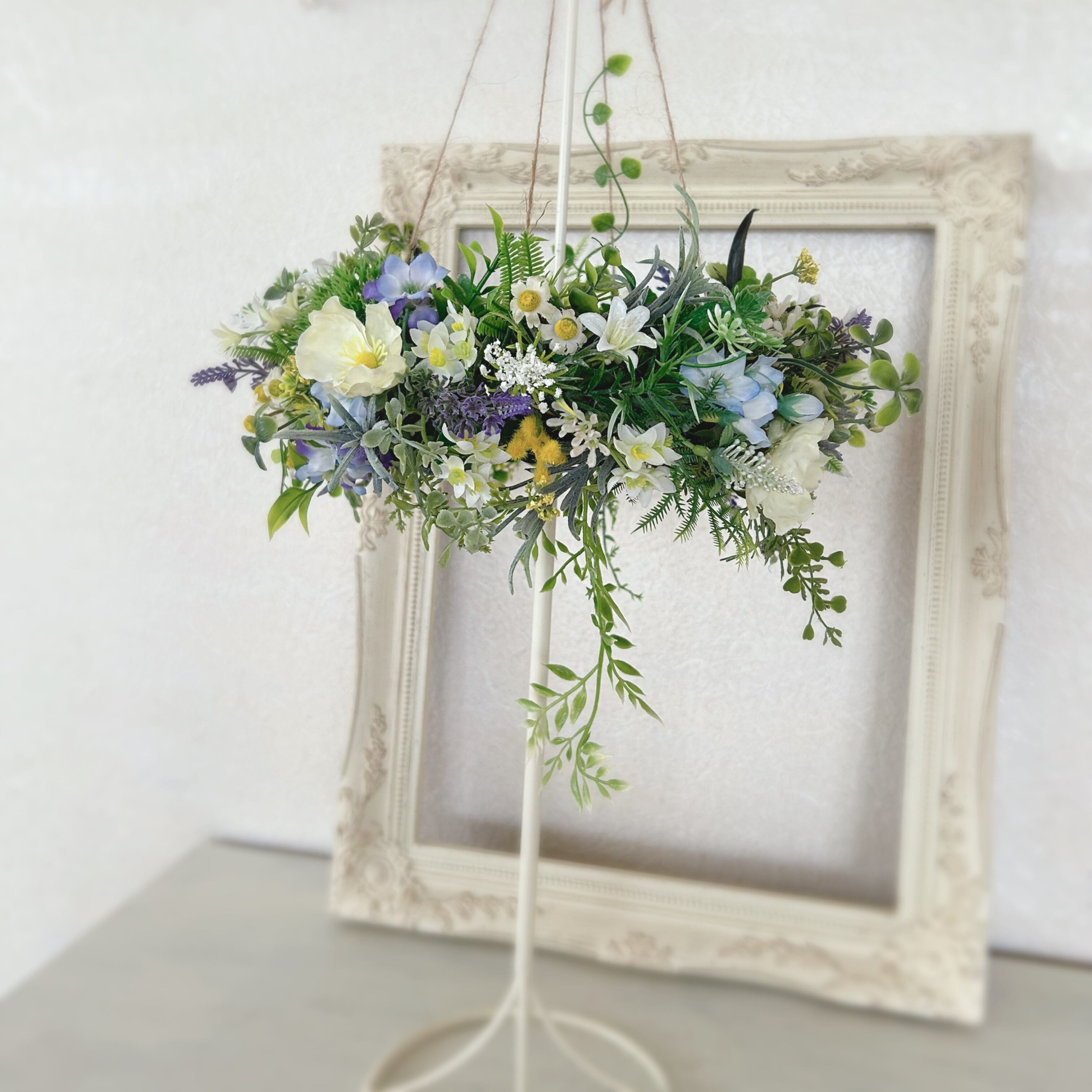《使用花材》アーティフィシャルフラワー:ユーカリ、ローズマリー、グリーン類、ラベンダー、ベビーブレス、デルフィニウム、ポピー、レースフラワー
