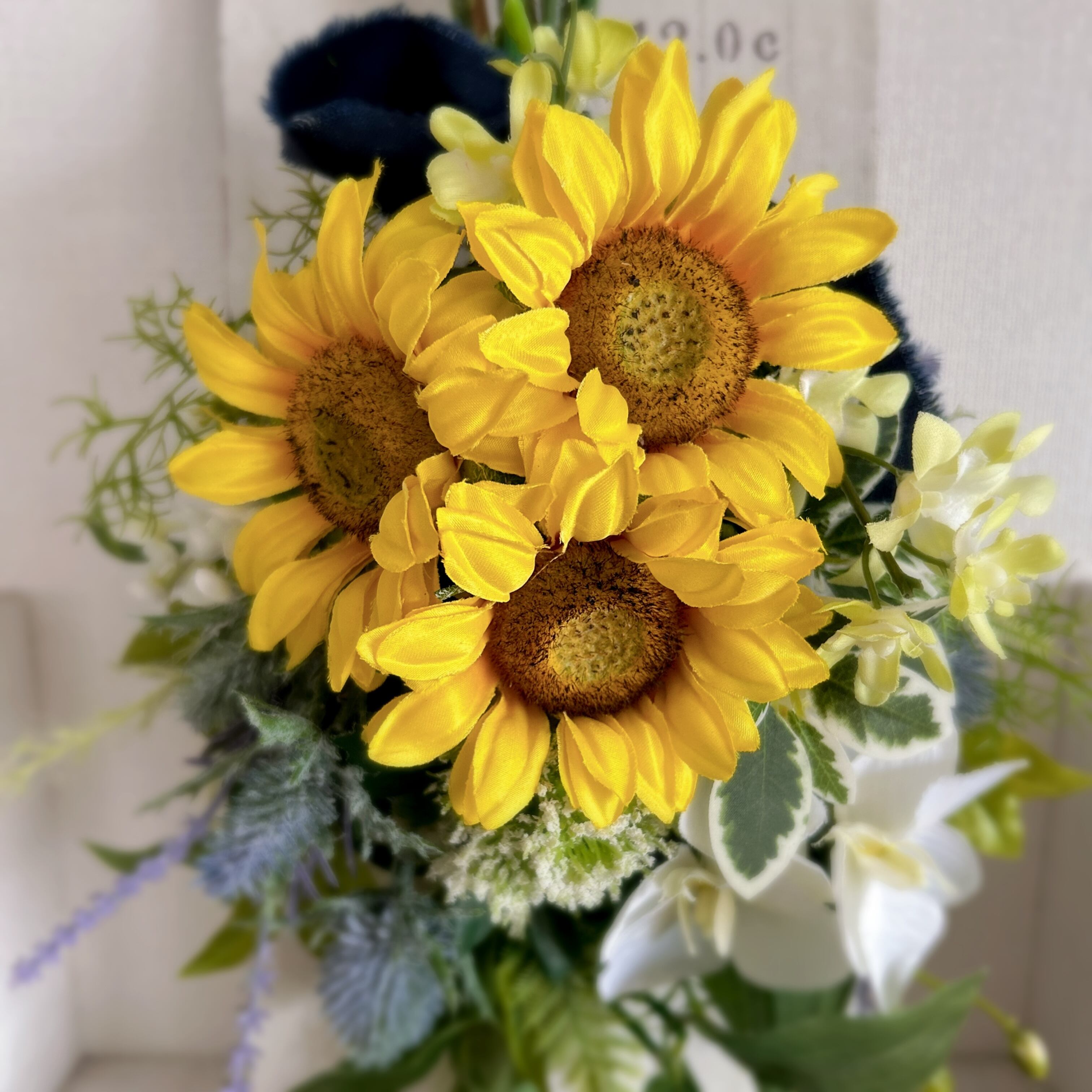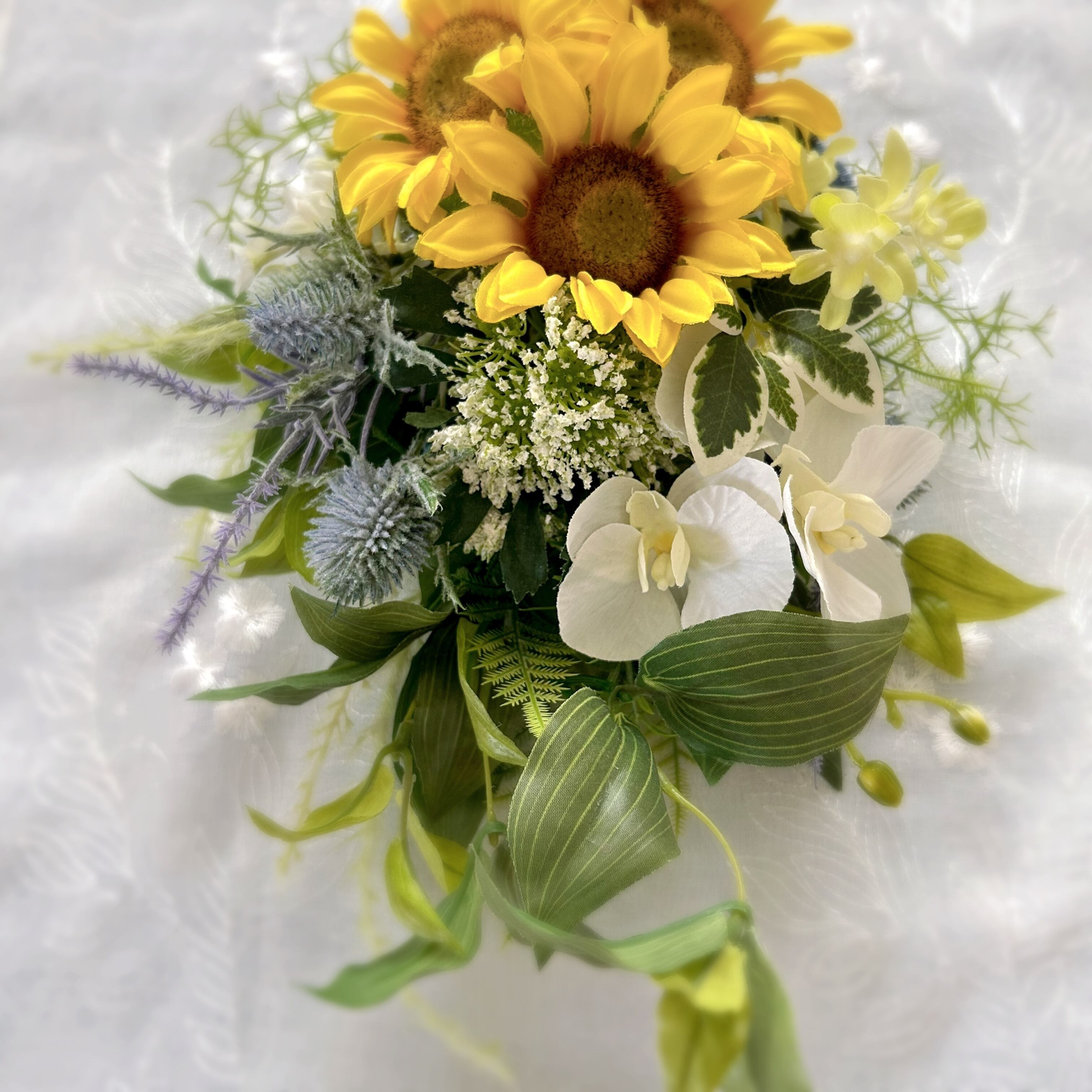 《使用花材》アーティフィシャルフラワー:ひまわり、ラベンダー、スマイラックス、胡蝶蘭、ライラック、オンシジューム、グリーン類