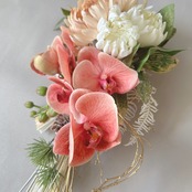 《使用花材》アーティフィシャルフラワー:菊、マム、松、胡蝶蘭、南天 その他:山シダ、しめ縄、水引