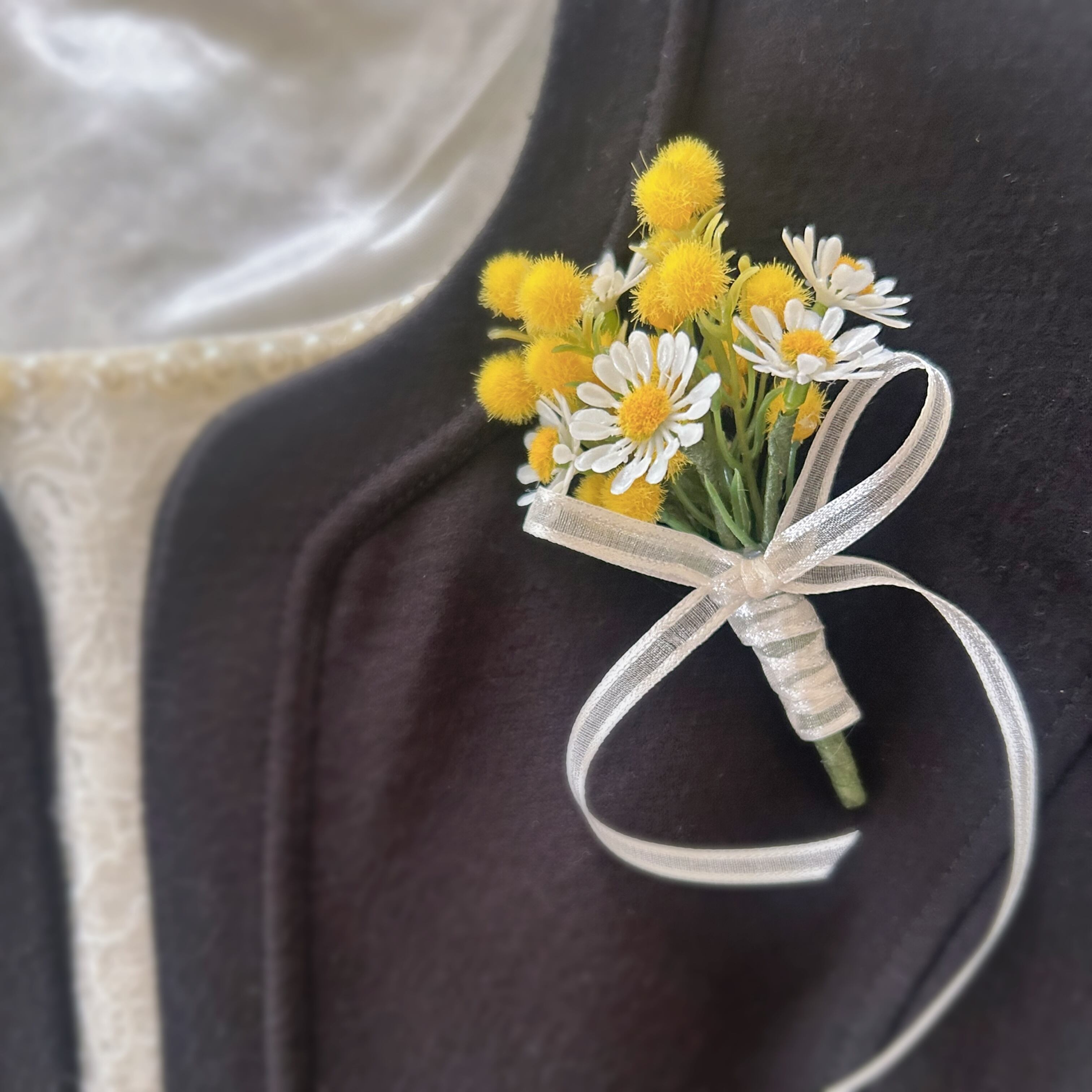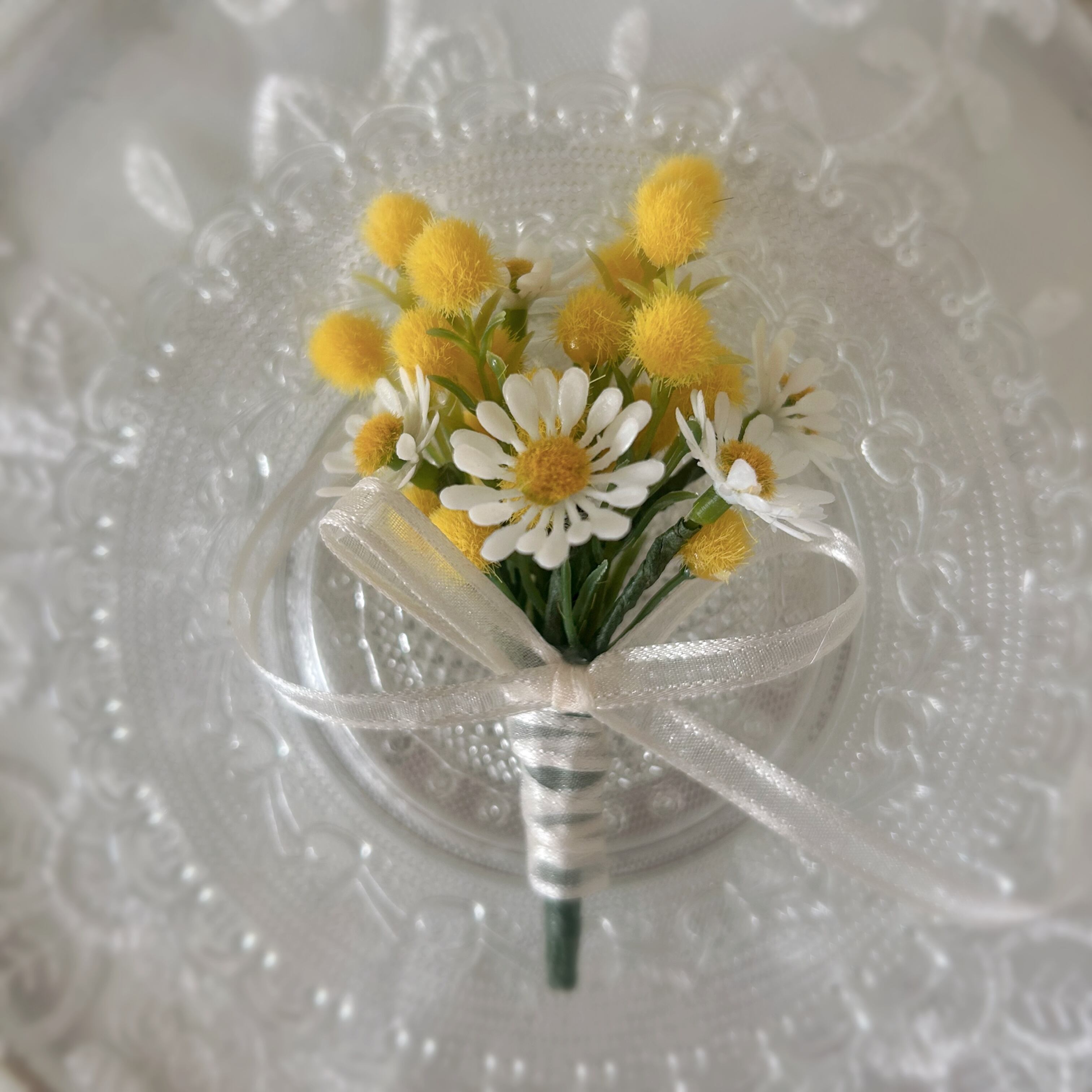 小さな花束みたいなミモザとカモミールのプチコサージュ/卒業式/入学式/入園式ママコーデ/オケージョン/ハレの日/造花コサージュ/プチサイズ