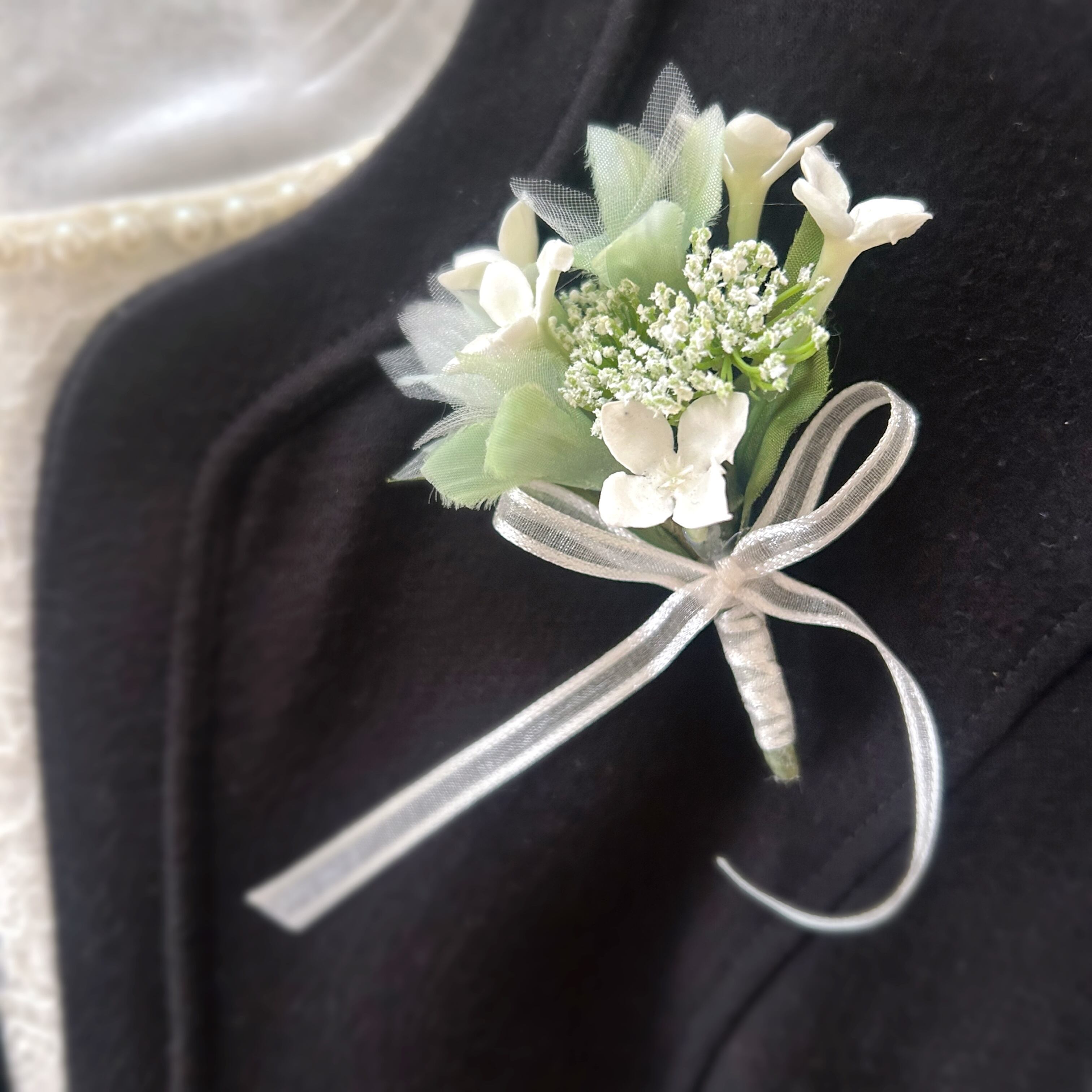 小さな花束みたいな白い小花のコサージュ/卒業式/入学式/オケージョン/セレモニー/フォーマル/造花コサージュ